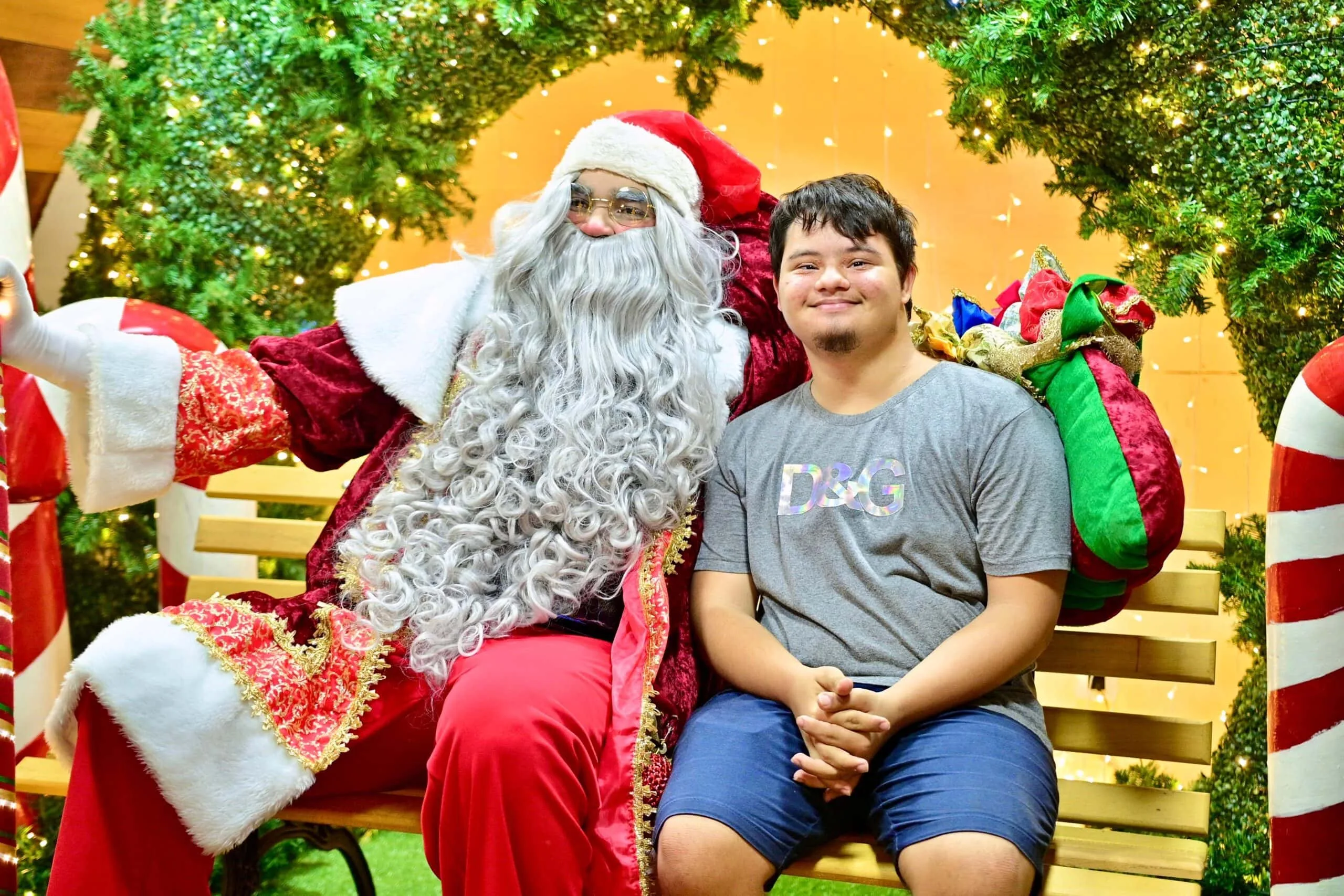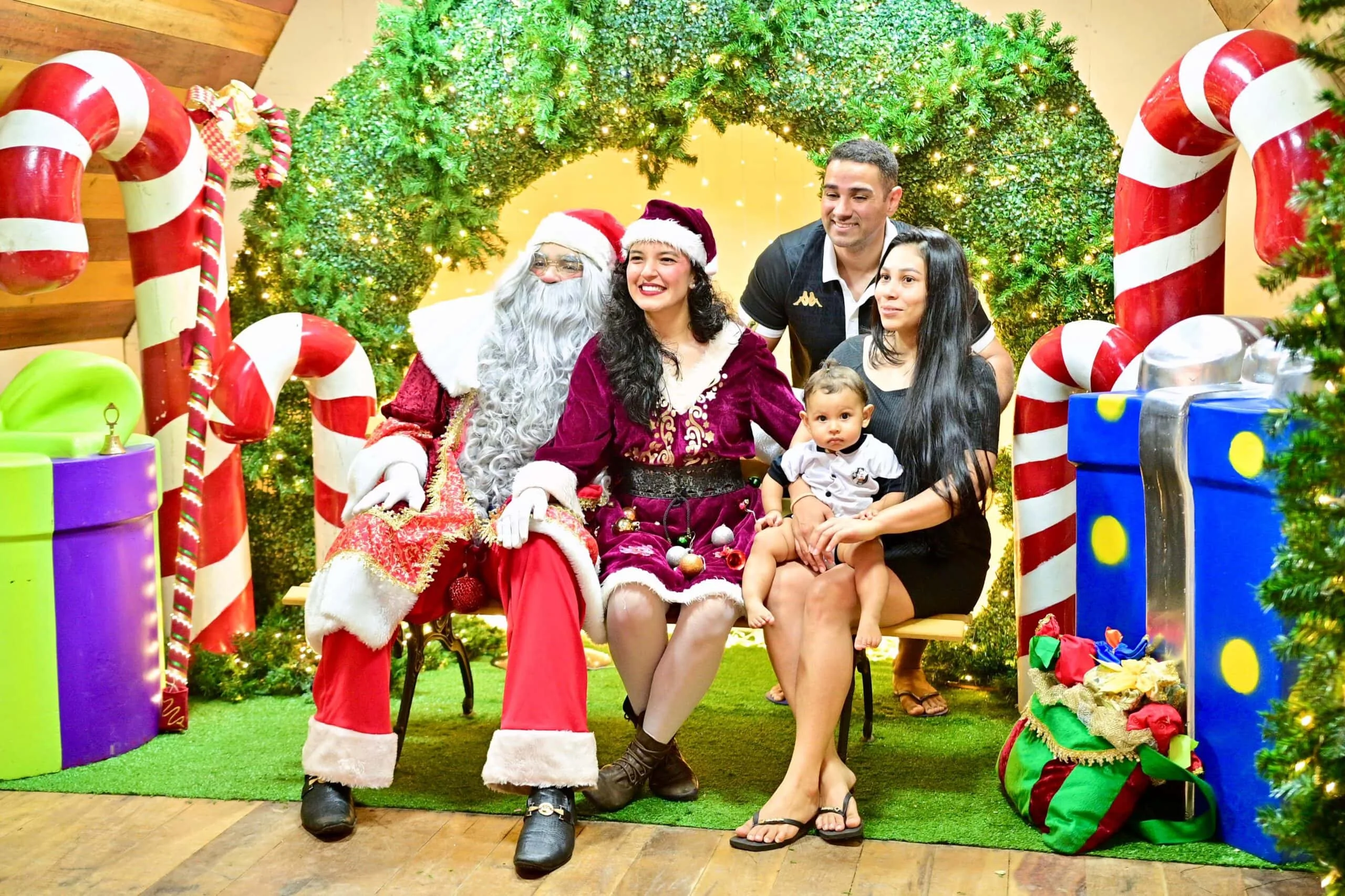 Luand Gadelha trouxe o filho, ainda de colo, para conhecer o Papai e a Mamãe Noel, garantindo à criança boas memórias desde cedo. Para ele, o fim de ano é um momento especial para celebrar a família e refletir sobre as coisas boas da vida ao lado de quem se ama.