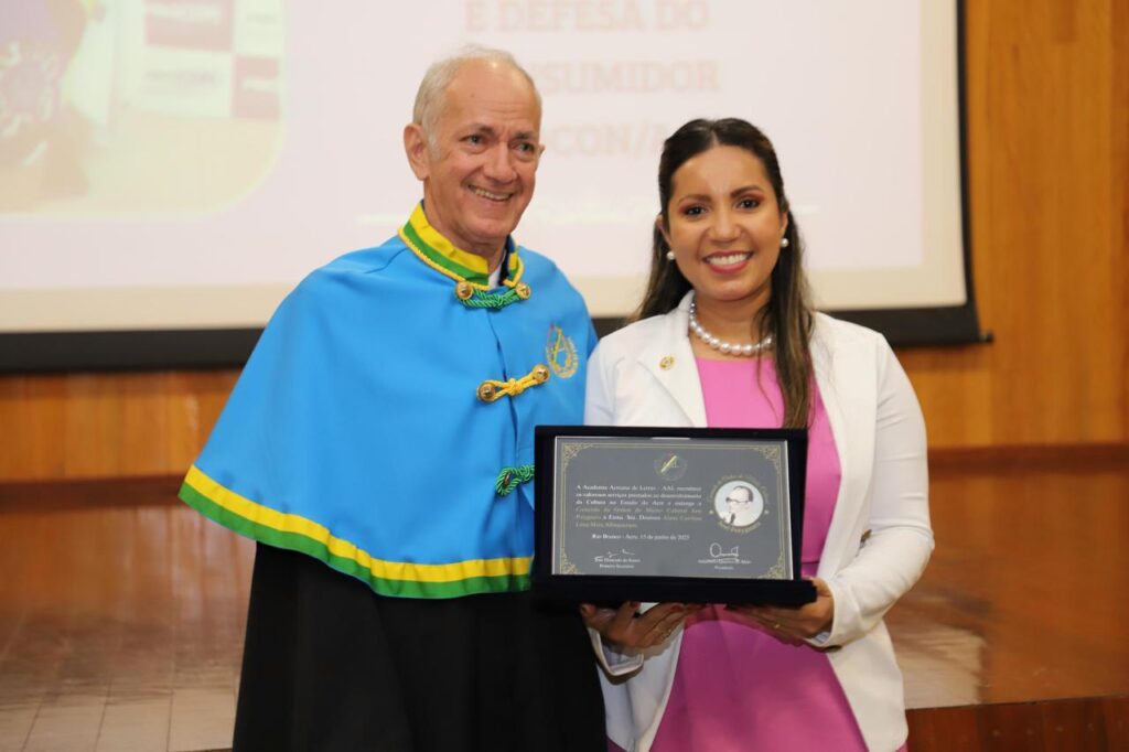 A advogada Alana Maia Albuquerque, atual presidente do Instituto de Proteção e Defesa do Consumidor do Acre (Procon), também comentou sobre a emoção de ser agraciada com a Comenda da Ordem do Mérito Cultural José Potyguara.